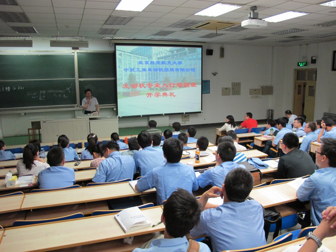 2013年5月13日上午,由北京欧美大片ppt免费大全与中航工业集团发动机控股有限公司联合主办、先进航空发动机协同创新中心承办的“发动机专业入行培训班”开学典礼在北京欧美大片ppt免费大全主M102教室隆重举行。