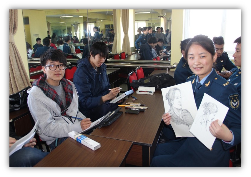 为了发扬能源与动力工程学院党支部和新媒体与艺术学院党支部共建党校的优势,充分发挥能源与动力工程学院航空专业背景和新媒体与艺术学院的艺术特长,本着为“航空一线工作者”服务的精神,在老兵退伍之际,支部开展了“青春留影送老兵”活动,为退伍的老兵描绘出专属他们的素描,将他们为祖国,为党奉献的青春用画笔铭记。本次志愿服务的主体对象为全体航博馆将退役的老兵,活动在中国航空博物馆的活动室里举行,采用一对一的方式,由党支部成员为退役老兵细心描绘。整个活动之中,整个党支部志愿服务队为退役老兵绘制素描肖像36幅,总历时三小时。在绘制素描的过程中,党支部的志愿者们与退役官兵们深入交流,从和他们的交流当中,了解到了他们的日常工作,也了解到了航空一线工作者的内心世界。