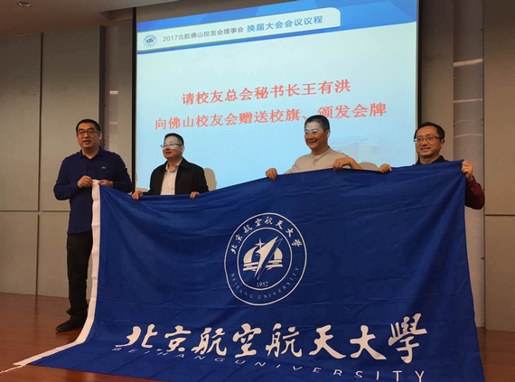 会上,佛山校友会副会长李杰介绍了佛山校友会换届筹备工作情况。第一届佛山校友会会长张宗科代表上届佛山校友会做了理事会工作报告,总结了佛山校友会在联系在佛校友,搭建校友平台,开展校友活动等方面的工作。会议选举产生了新一届理事会,推选81级4系校友、科达洁能股份有限公司董事长边程为会长,毛巨勇为常务副会长兼秘书长,武祯、李杰为执行会长,丁伟雄、王康平、陈启康、邓文雄、朱江等为副会长,关琪、梁旺胜、郝正成、曾芃斐等为副秘书长。校友总会秘书长王有洪为新任会长颁发了会长聘书,为佛山校友会颁发了会牌和赠送了校旗。新任会长边程为副会长、秘书长、副秘书长颁发了聘书。校友代表曾芃斐代表佛山校友发表讲话。北航广东校友会会长李罡代表兄弟校友会讲话。
