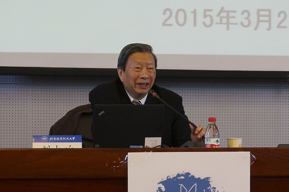 刘大响院士在一开始先介绍了航空发动机的发展前景以及空天运载技术融合的发展构想,引起了在座同学们的极大兴趣。然而,航空发动机的发展困难重重,刘大响院士总结了“三高四低一长”的发展要求,即高安全性,高可靠性,高性能,低油耗,低噪声,低污染,低维修成本和长寿命。他讲到:“要适应恶劣的工作条件,必须依靠高技术的发展,航空发动机的研制过程始终在挑战工程科学技术的极限。”随后,刘大响院士语重心长地为同学们讲述了我国航空发动机取得的成就以及所面临的若干问题。在对比中,同学们看到了我们的差距和不足,正确认识了我国航空发动机事业的发展现状。