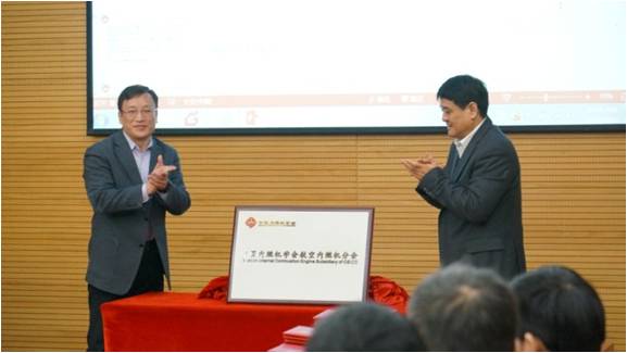 我校副校长陶智教授和中国内燃机学会马童立副理事长为分会授章揭牌。能源与动力工程学院院长丁水汀教授介绍了“中国内燃机学会航空内燃机分会”成立背景并作了题为“通用航空发动机发展趋势和北航的研究进展”的学术报告。