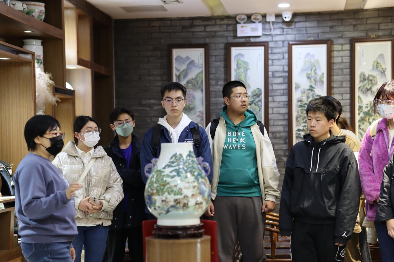 活动开始,同学们跟随着讲解员的脚步,走进了这段由精美瓷器点缀的历史长河。在专业讲解员的讲述下,同学们了解到了中国传统瓷器的历史与制作工艺;从瓷器上精心刻画的圈圈纹路中,同学们深深地感受到了中华传统文化散发出的浓郁魅力。