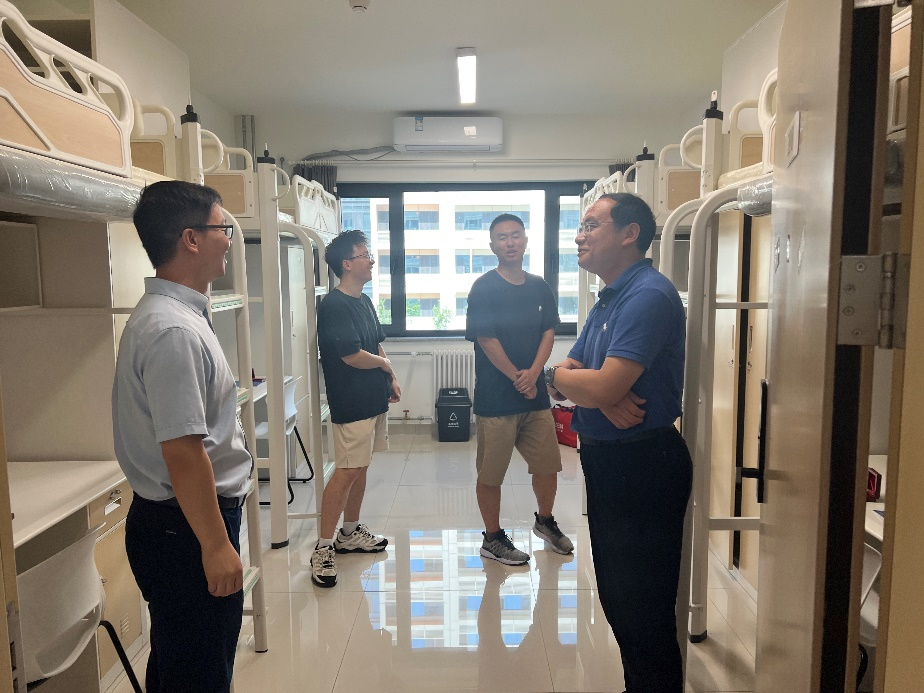 动力学院党委书记董卓宁与副书记谷萌来到研究生宿舍,与前来报到的新生亲切交流,询问大家的入学感受,了解大家的学习生活需求。