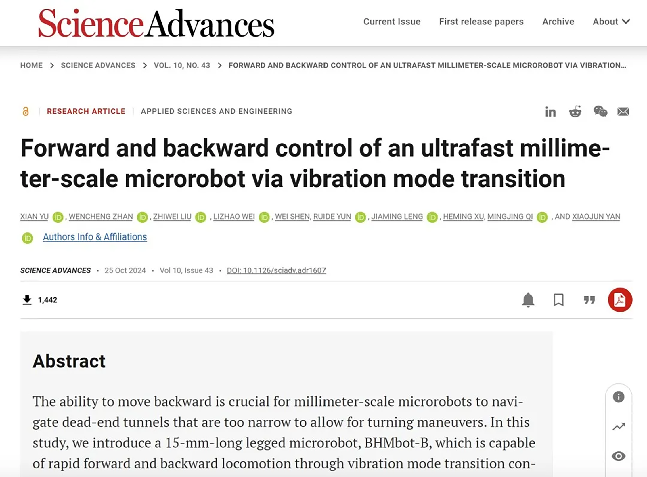 坚持“四个面向”,科技创新能力持续增强,顶尖科研成果不断涌现。发表Nature正刊、Nature /Science子刊高水平论文5篇,实现顶刊论文零的突破,相关成果受到主流媒体报道9次。“氢动一号”成功首飞,机器“昆虫”走出科幻登上新闻联播,太阳能动力微型飞行器创世界之最。获批国家自然科学基金18项,北京市自然基金本科生项目3项。科研投入连续五年保持较高水平。强组织的推进三个重点团队科研任务。科研成果获省部级科技奖励3项。与北京理工大学共建全国重点实验室。